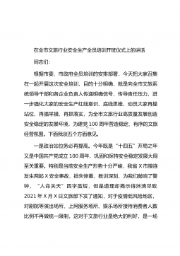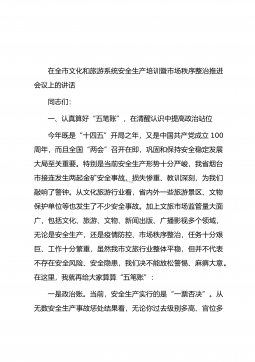 在全市文化和旅游系统安全生产培训暨市场秩序整治推进会议上的讲话