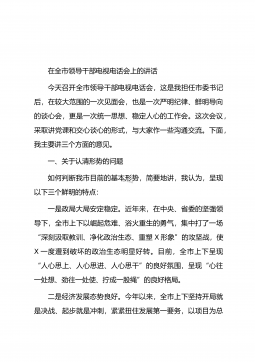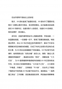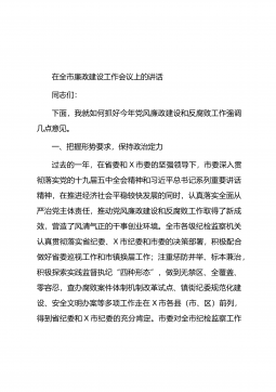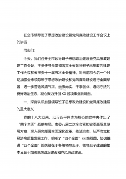 在全市领导班子思想政治建设暨党风廉政建设工作会议上的讲话同志们:今天,我们召开全市领导班子思想政治建设暨党风廉政建设工作会议,主要任务是贯彻落实全省领导班子思想政治建设工作会议和省纪委十一届五次全会精神,对当前和今后一个时期加强全市领导班子思想政治建设和党风廉政建设进行全面部署,进一步营造风清气正、崇廉尚实、干事创业、遵纪守法的良好政治生态,凝心聚力开创XX各项事业新局面。一、深刻认识加强领导班子思想政治建设和党风廉政建设的重大意义党的十八大以来,以习近平同志为核心的党中央作出了“四个全面”战略布局。市委八届二次全会紧扣省委高质量发展方略,深入研究部署全面深化改革、依法治市、从严治党和经济高质...