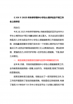 在XX市2025年秋季学期中小学生心理评估及干预工作会上的讲话