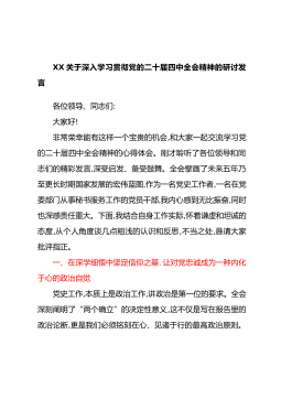 XX关于深入学习贯彻党的二十届四中全会精神的研讨发言