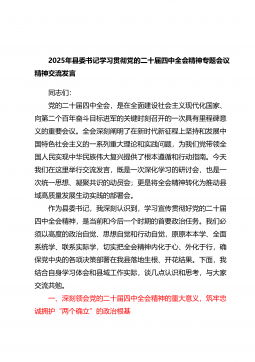 XX关于深入学习贯彻党的二十届四中全会精神的研讨发言各位领导、同志们:大家好!非常荣幸能有这样一个宝贵的机会,和大家一起交流学习党的二十届四中全会精神的心得体会。刚才聆听了各位领导和同志们的精彩发言,深受启发、备受鼓舞。全会擘画了未来五年乃至更长时期国家发展的宏伟蓝图,作为一名党史工作者,一名在党委部门从事秘书服务工作的党员干部,我内心感到无比振奋,同时也深感责任重大。下面,我结合自身工作实际,怀着谦虚和坦诚的态度,从个人角度谈几点粗浅的认识和反思,不当之处,恳请大家批评指正。一、在深学细悟中坚定信仰之基,让对党忠诚成为一种内化于心的政治自觉文秘家园网站(wenmijiayuan.com)整理...