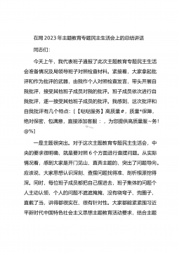 2022年度在党支部组织生活会和组织评议党员大会上的点评讲话(1184字)同志们:按照市委统一安排,今天,专程来到这里,参加XX局党支部的专题组织生活会。近年来,XX局党支部认真贯彻落实党中央和省委、市委部署要求,紧紧围绕县委中心工作,认真践行“五个坚持”,圆满完成各项工作任务,为高质高效开展工作提供了强有力的支持和保障,为全市各项事业高质量发展作出了积极贡献。会前,XX局党支部认真组织学习研讨,深入开展谈心谈话,广泛征求意见建议,深刻查摆问题不足。刚才,大家相互之间开展了严肃认真的批评与自我批评,可以说是坦诚相见,开出了一定的“辣味”,达到了“红红脸、出出汗”的目的和要求。总的来说,本次组织...