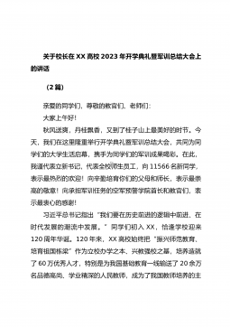 (2篇)关于校长在XX高校2023年开学典礼暨军训总结大会上的讲话