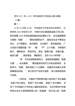 学习 2022—2023年中央经济工作会议心得体会(讲稿)(5篇)