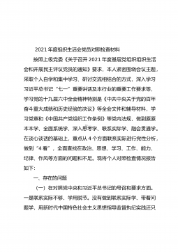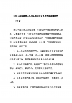 2021年度专题民主生活会、组织生活会批评与自我批评意见25条