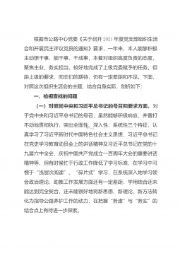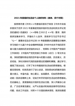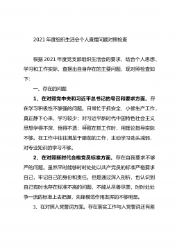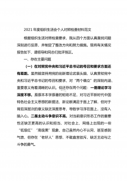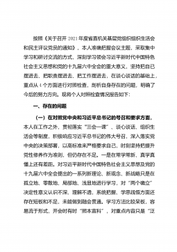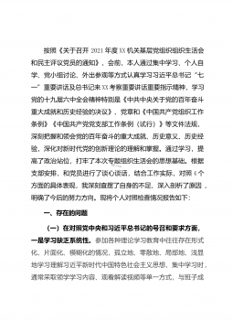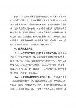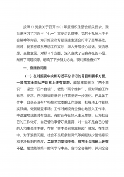 2021年度组织生活会个人对照检查材料范文2篇含卫生健康局党支部书记