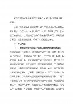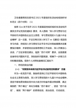 卫生健康局党支部书记2021年度组织生活会检视剖析材料范文(四个对照)(1)按照《xx关于召开2021年度基层党组织组织生活会和开展民主评议党员的通知》要求,本人围绕“深入学习贯彻习近平新时代中国特色社会主义思想,学习贯彻党的十九届六中全会精神”这一主题,于近日再次深入学习了xx《通知》规定的学习内容,持续深入学习贯彻习近平总书记对我省重要讲话重要指示精神,并紧密结合自身思想和工作实际,深入开展谈心谈话,广泛征求意见建议,按照“四个对照”要求,全面查摆自身存在问题和不足,深刻剖析问题根源,明确下一步努力方向和整改措施。现将个人对照检查情况汇报如下:一、存在的突出问题(一)“对照党中央和习近平总...