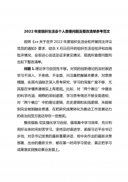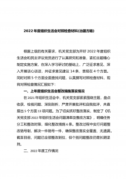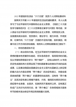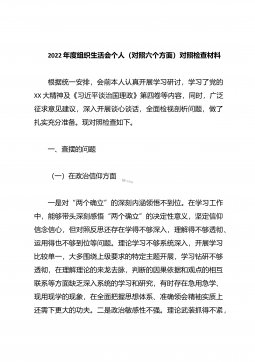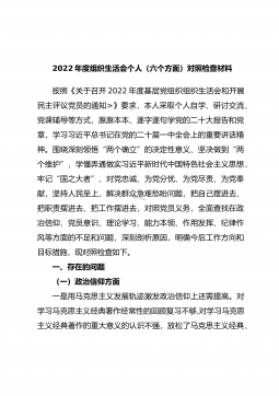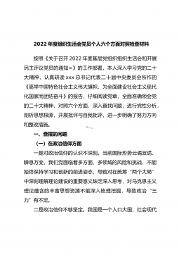 2022年度组织生活会党员个人对照检查发言材料(政治信仰等6方面)