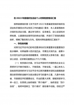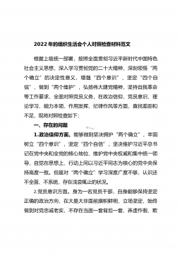 2022年度组织生活会个人对照六个方面检查材料(全文5776字)