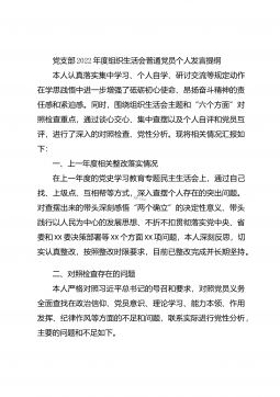 2022年度组织生活会上对党支部及支委成员的批评意见20例