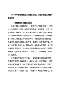 2022年民主生活会、组织生活会相互批评意见(50例)(2)
