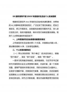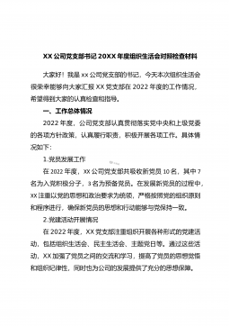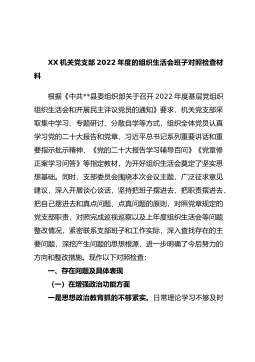 XX机关单位党支部2022-2023年度组织生活会六个方面党员个人对照检查材料根据市委组织部《关于召开2022年度基层党组织组织生活会和开展民主评议党员的通知》要求,我原原本本、逐字逐句的学习了二十大报告和党章,学习了习近平总书记在党的二十届一中全会上的重要讲话精神,学习了《党的二十大报告学习辅导百问》《二十大党章修正案学习问答》等辅导材料。紧紧围绕“全面贯彻习近平新时代中国特色社会主义思想,深入学习贯彻党的二十大精神,深刻领悟'两个确立'的决定性意义,增强'四个意识'、坚定'四个自信'、做到'两个维护',弘扬建党精神,坚持自我革命,增强党组织政治功能和组织功能”这个主题,深入查找了深刻领悟“...