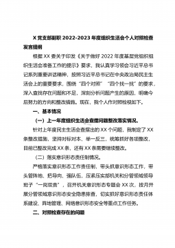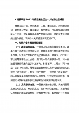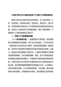 X党支部2022-2023年度组织生活会六个方面个人对照检查材料