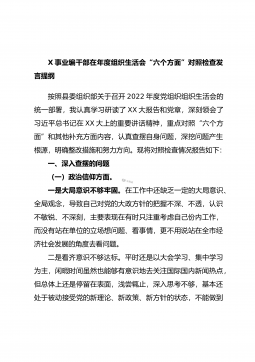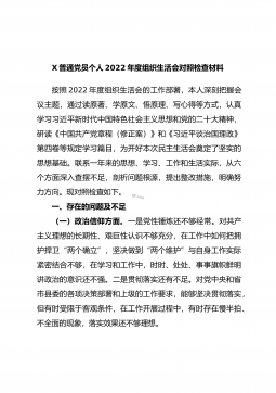 X机关单位党支部2022-2023年度组织生活会六个方面党员个人对照检查材料