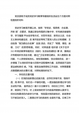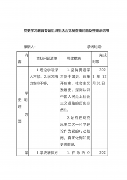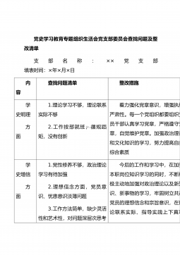 党史学习教育专题组织生活会党支部委员会查找问题及整改清单