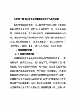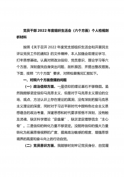 党员干部2022年度组织生活会普通干部个人发言提纲(政治信仰等6方面)