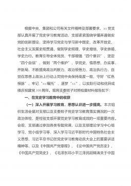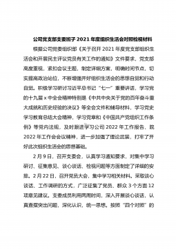 根据中央、集团和公司有关文件精神及部署要求,xx党支部认真开展了党史学习教育活动,支部紧紧围绕学懂弄通做实党的创新理论,坚持学习党史与学习新中国史、改革开放史、社会主义发展史相贯通,做到学史明理、学史增信、学史崇德、学史力行。教育引导全体党员、干部增强“四个意识”、坚定“四个自信”、做到“两个维护”,学党史、悟思想、办实事、开新局,不断提高政治判断力、政治领悟力、政治执行力,自觉在思想上政治上行动上同党中央保持高度一致,守好“红色根脉”、牢记“xx嘱托”、逐梦“xx”,以实际行动和优异成绩庆祝建党100周年。现将支委班子对照检查材料报告如下:一、在党史学习教育中的收获(一)深入开展学习教育,思...