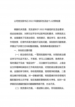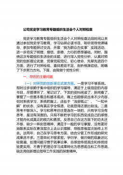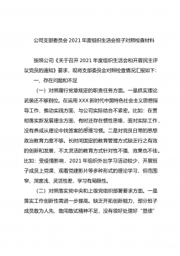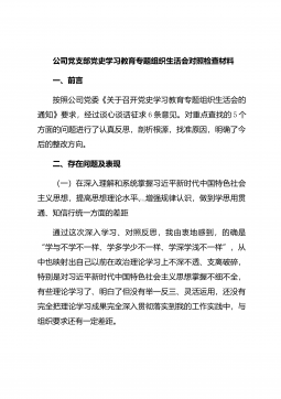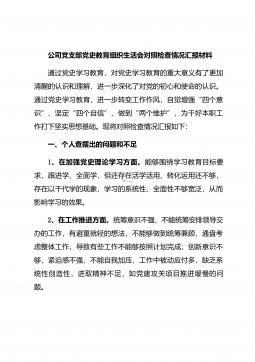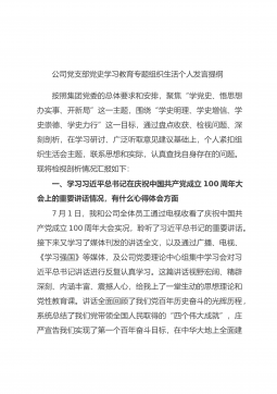 公司党支部党史学习教育专题组织生活会支委班子对照检查材料
