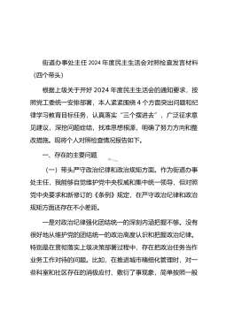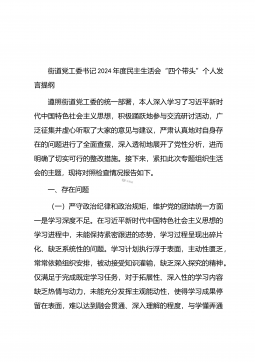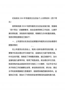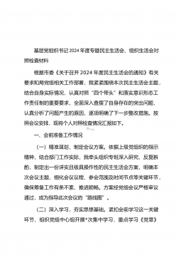 基层党组织书记2024年度专题民主生活会、组织生活会对照检查材料(四个带头+反面典型案例剖析)