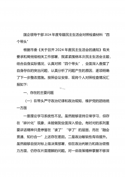 国企党委书记2024年民主生活会个人对照检查材料(四个带头+典型案例)