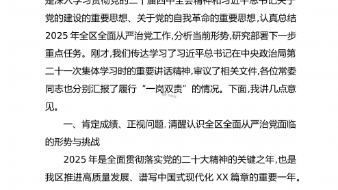在XX区委常委会全面从严治...