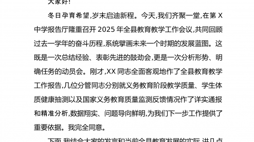 在全县安全生产工作推进会上的讲话下午,我们实地检查了×等人员密集场所和重点区域的安全生产情况,接着又在这里集中召开会议。刚才,×同志通报了全县安全生产工作情况,县住建局、公安局、交通局、×办事处分别作了发言。各乡镇(处)、县安委会各成员单位要切实提高政治站位,扎实落实安全生产责任,全面深入排查整改,抓紧补齐工作短板,防范未然,确保全县安全生产形势稳定。下面,就抓好全县安全生产工作,我再强调几点:一、提高站位,高度警醒安全生产关系千家万户,关系人民群众的切身利益,是民生问题,更是政治问题。特别是年终岁尾,人流车流物流剧增,天气变化无常,影响安全生产的不稳定因素增多,是各类事故的易发期、多发期,也...