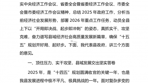 在2021年第一次县委全委扩大会议暨全县经济工作会议上的讲话同志们:这次会议的主要任务是,深入贯彻党的十九届五中全会和省委X届X次全会精神,全面落实中央和省、地经济工作会议部署,总结“十三五”和X年工作,分析研判形势,安排下步任务。下面,我讲三方面意见。一、工作严细、脚踏实地,以奋斗姿态交出高质量答卷“十三五”时期是我县发展进程中的关键阶段。全县上下在县委的坚强领导下,知责担当、攻坚克难、砥砺前行,县域综合实力达到新水平,决胜全面小康取得新成就。地区生产总值年均增长X%;社会消费品零售总额年均增长X%;公共财政预算收入年均增长X%,增速位居全省前列。森林覆盖率、有林地面积、活立木蓄积保持稳定增...