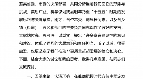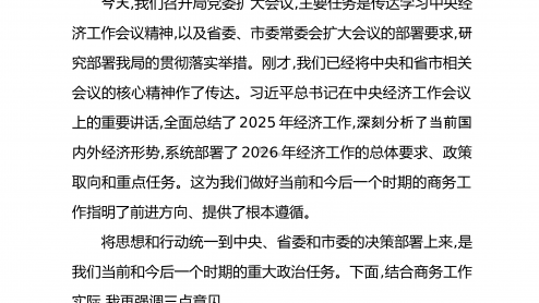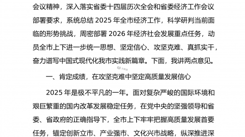 在2025年市交通运输局党组(扩大)会议暨全会精神学习贯彻部署会上的讲话同志们:今天,我们召开局党组(扩大)会议,主要任务是深入学习领会党的二十届四中全会精神,并结合我市交通运输发展的实际,研究部署全局系统的学习宣传和贯彻落实工作。党的二十届四中全会,是在我国迈向全面建设社会主义现代化国家新征程、向第二个百年奋斗目标进军的关键时期,召开的一次具有里程碑意义的重要会议。总书记在全会上的重要讲话,高屋建瓴、思想深邃、内涵丰富,深刻阐述了新时代新征程上一系列重大理论和实践问题,为“十五五”乃至更长时期我国经济社会发展指明了前进方向、提供了根本遵循和行动指南。全局各级党组织和全体党员干部,必须将学习好...